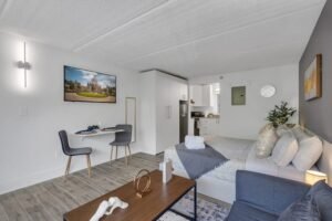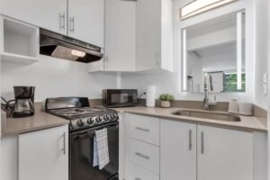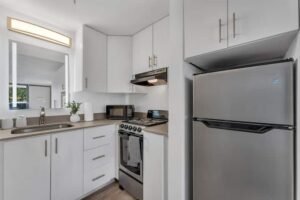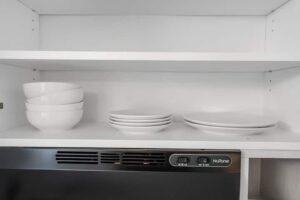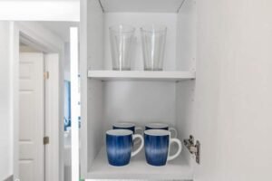 Baking sheet . Barbecue utensils . Blender . Children’s dinnerware . Coffee . Coffee maker . Cooking basics . Dishes and silverware . Dishwasher . Freezer . Hot water kettle . Microwave . Oven . Refrigerator . Stove . Toaster . Wine glasses . High chair . Rice maker